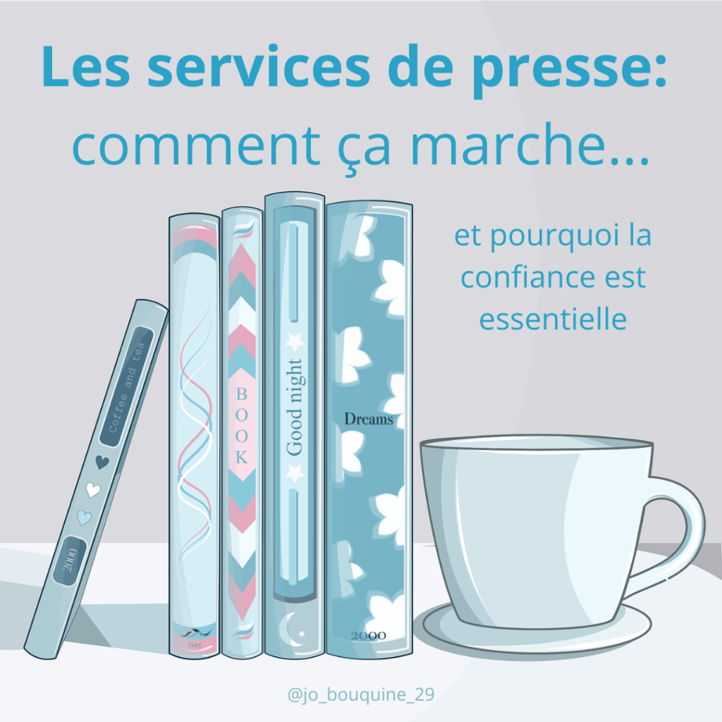 Un service de presse est un exemplaire envoyé gratuitement par une maison d’édition ou un auteur à une personne susceptible d’en parler : chroniqueurs littéraires, journalistes, blogueurs, bookstagrammers, podcasteurs…