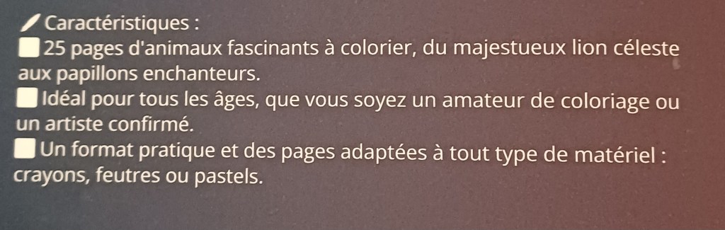 Entre le format réduit, le faible nombre de coloriages, la qualité du papier et les promesses marketing non tenues, l’ensemble donne une impression de produit peu abouti, manquant de générosité et de soin dans sa conception. Les Animaux de rêve repose sur une idée de départ intéressante, mais souffre d’un manque évident de réflexion sur l’expérience utilisateur.